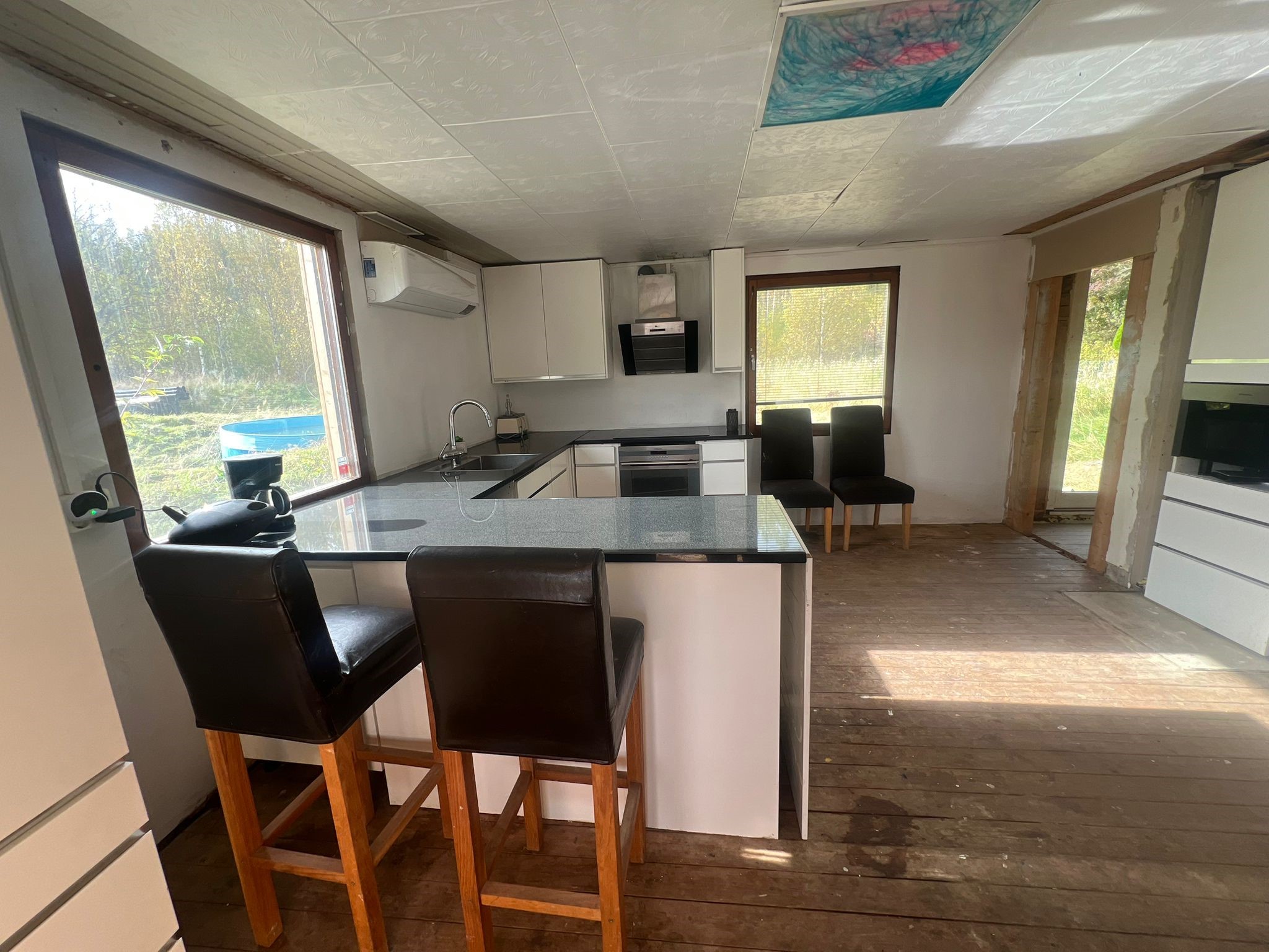 Renovering har utförts löpande sedan 2020 med: 3-kammarbrunn med infiltration ( ej installerad) Ny panel Fönsterbyte Balkong Luftvärmepump Kök.